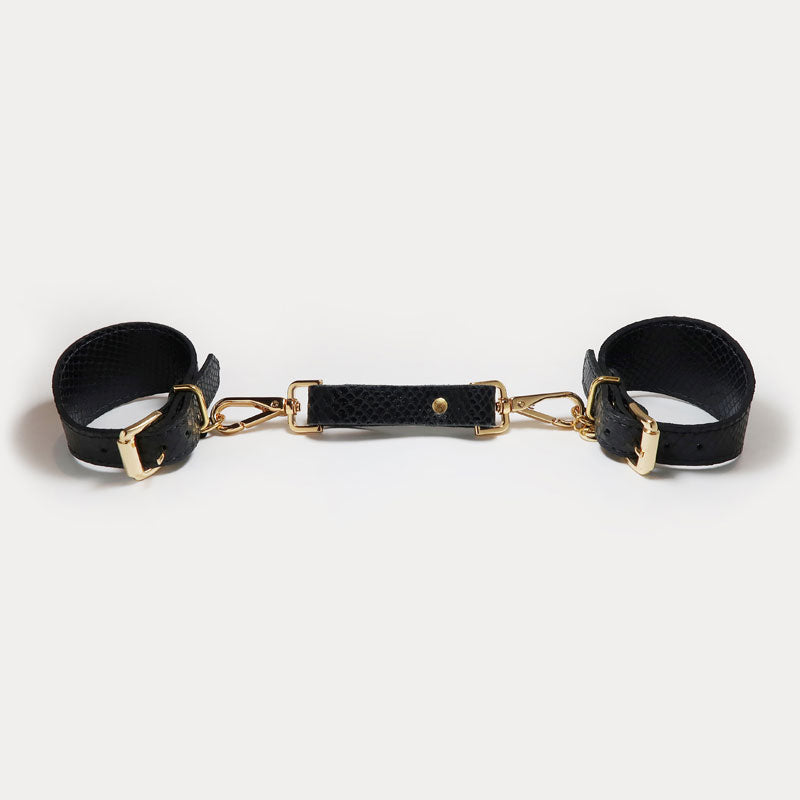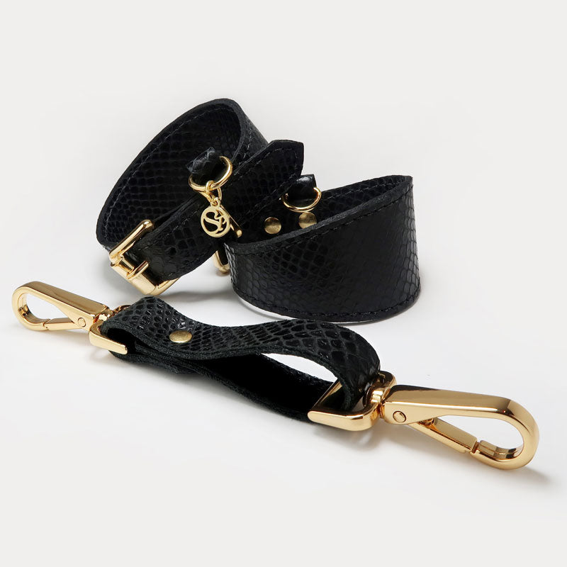 Algemas feitas de couro com o padrão característico da Secret Play.