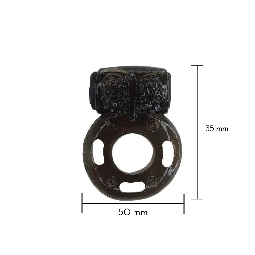 Anel peniano flexível com estimulador clitoriano em forma de borboleta.