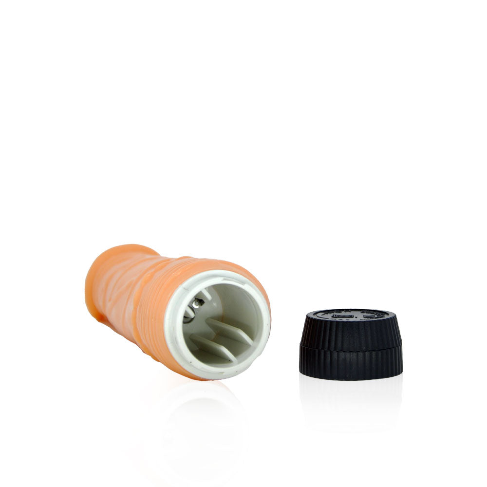 Prótese peniana confeccionada em silicone macio. Possui veias e uma glande bem definida que trazem maior realismo ao produto, e massageiam o canal vaginal ou ânus durante a penetração.